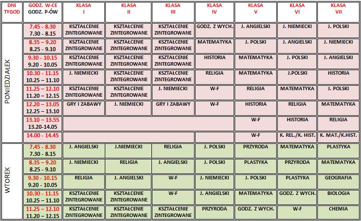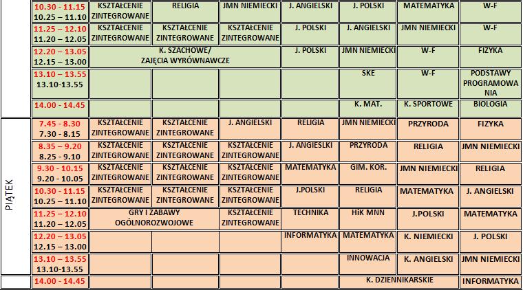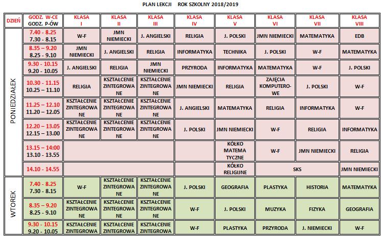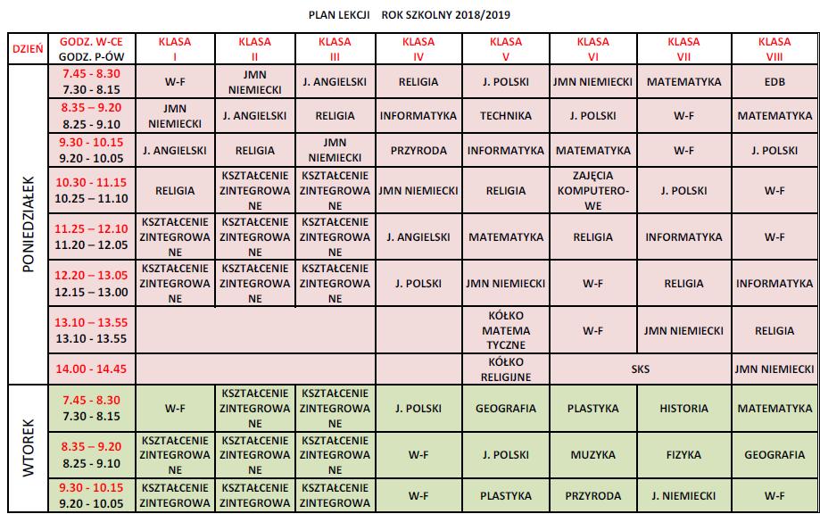 plan lekcji