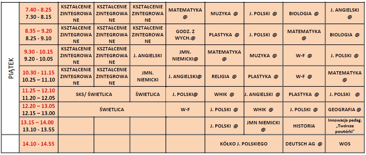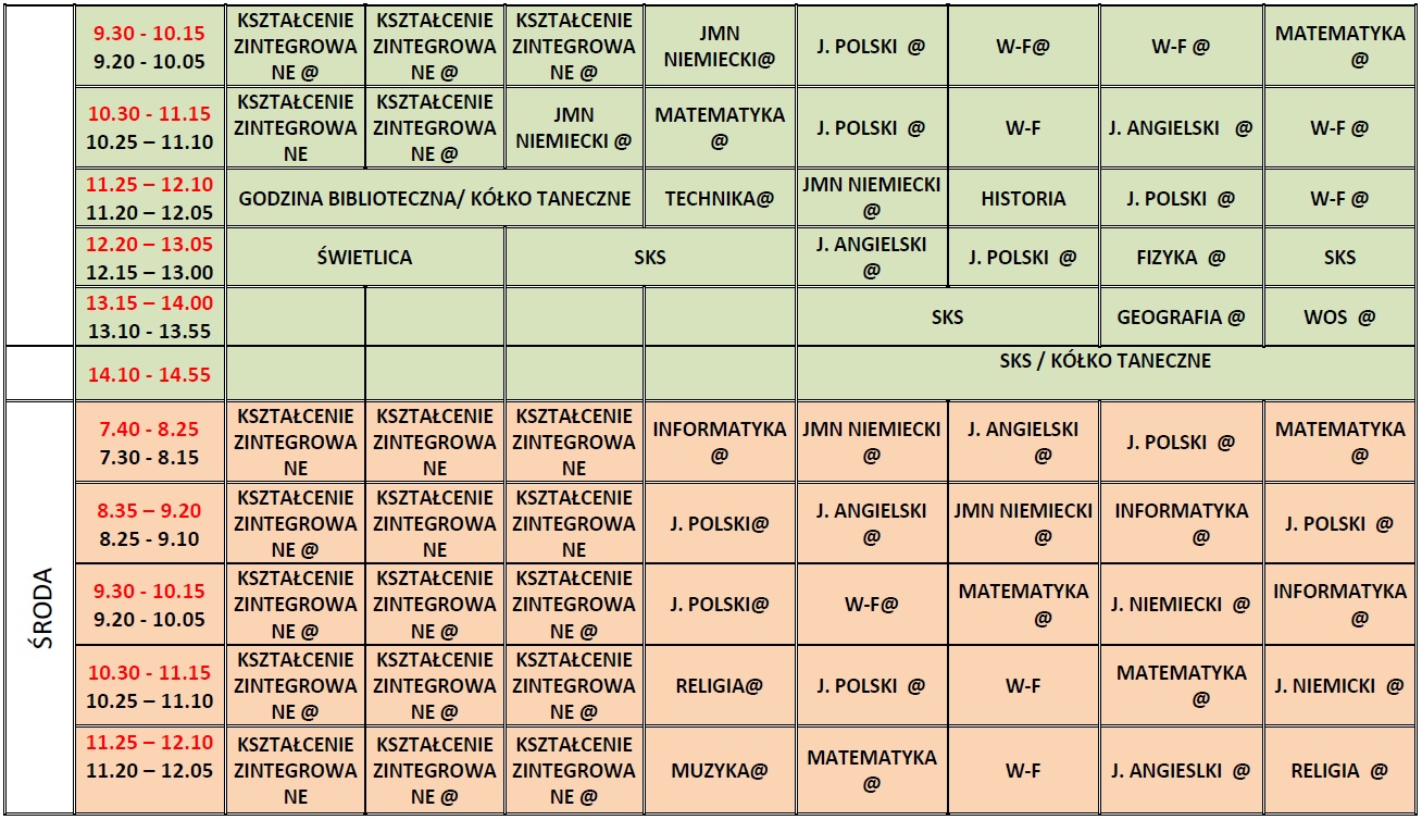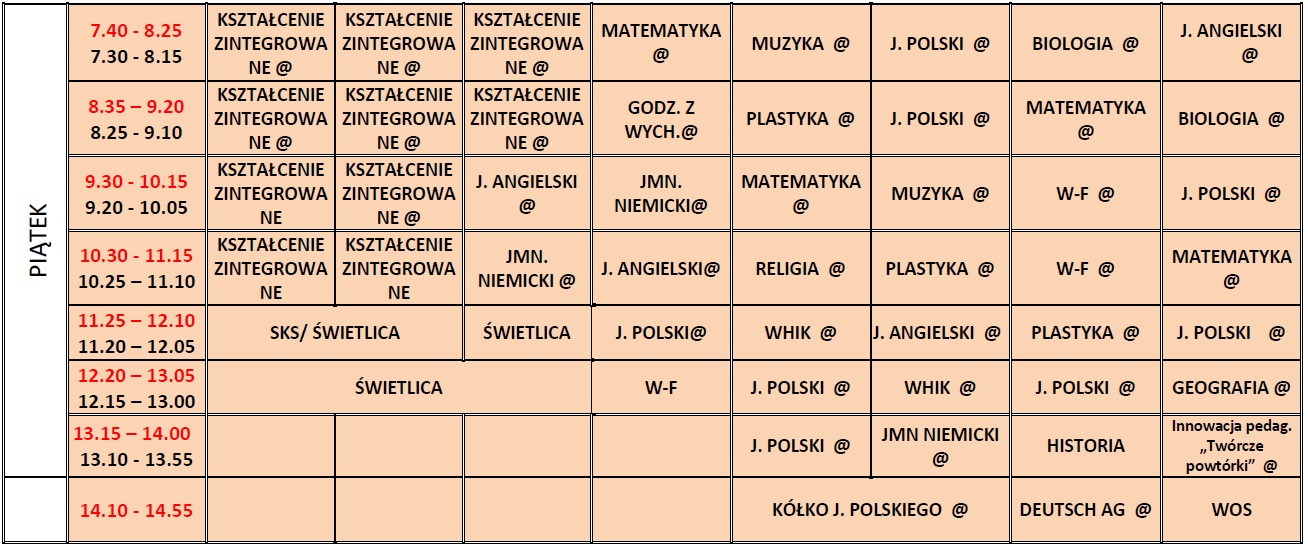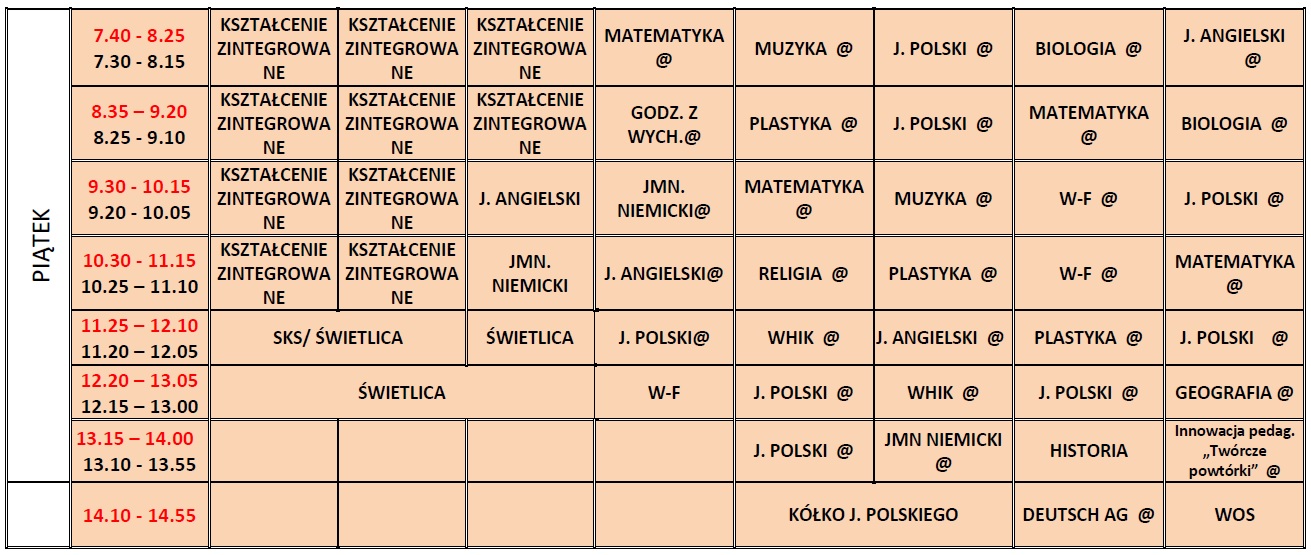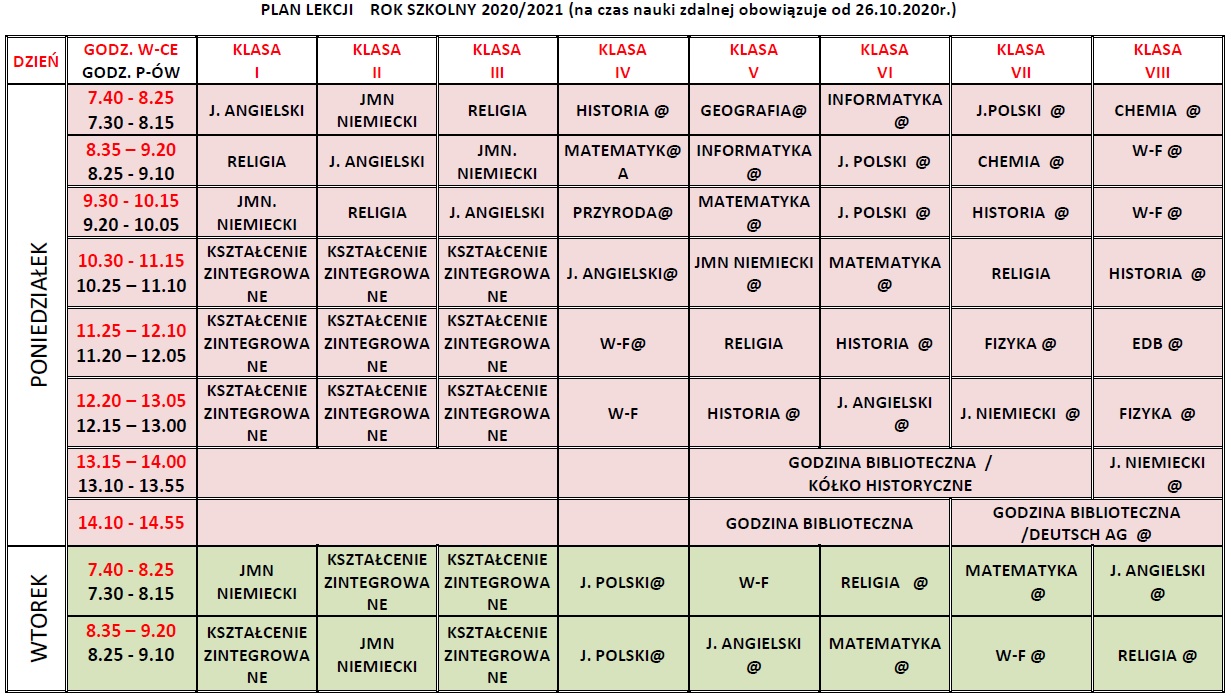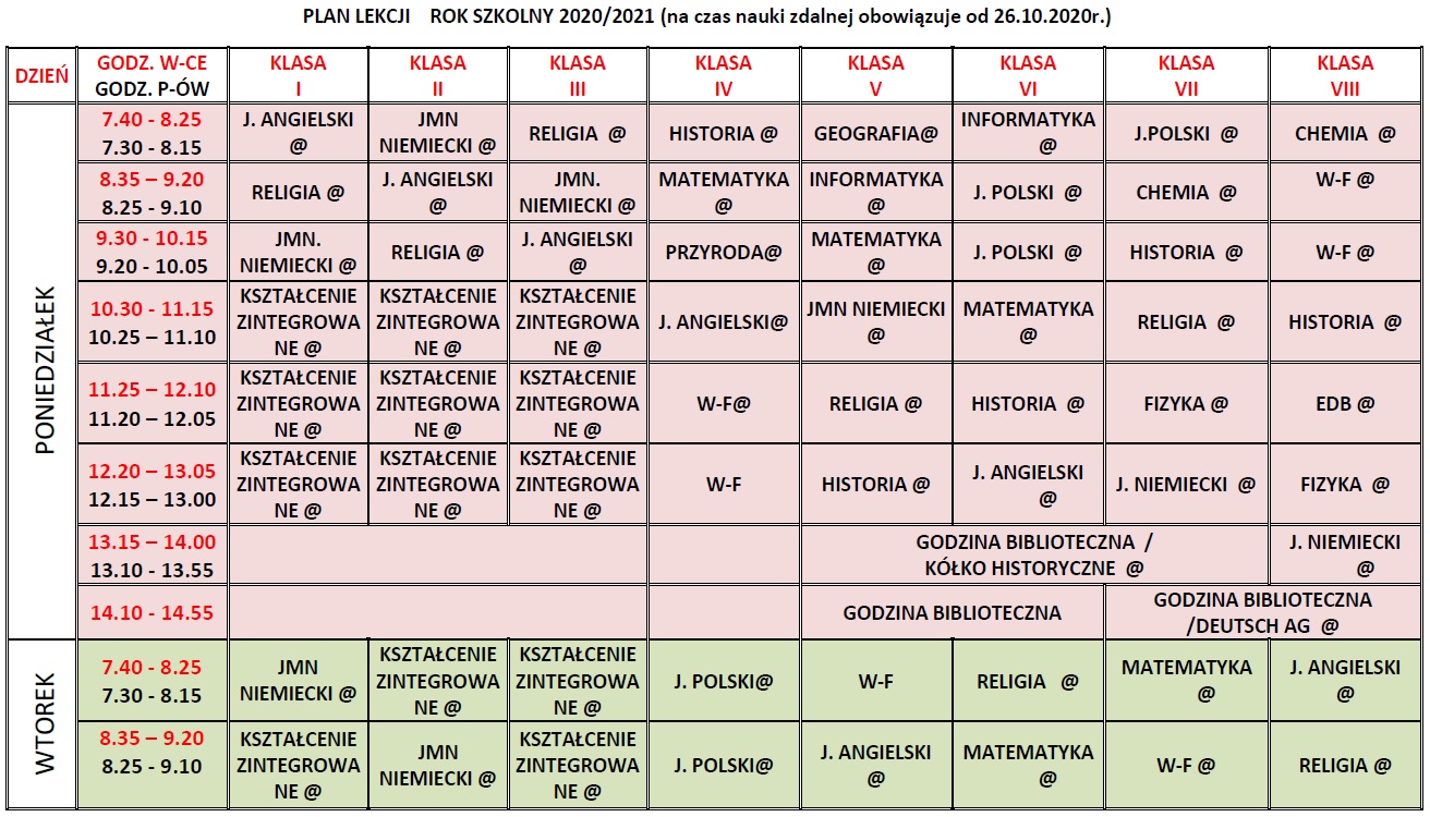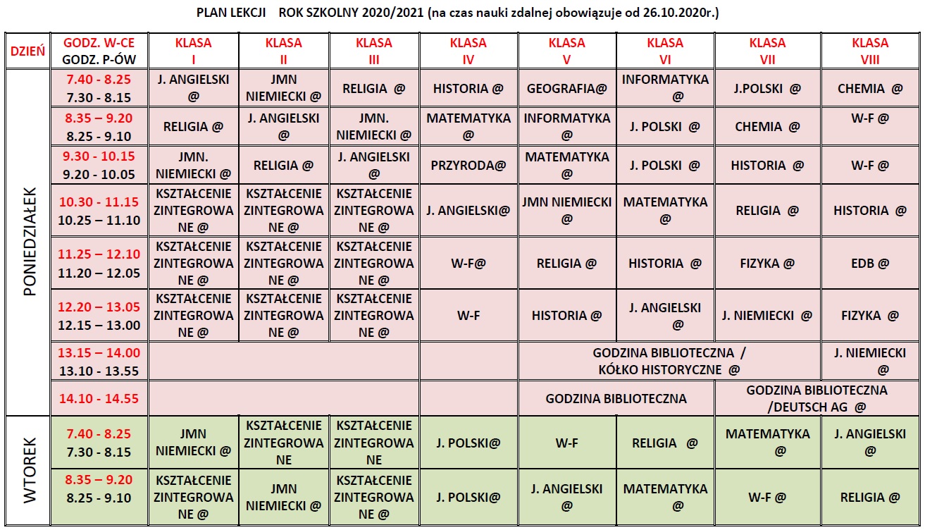 Plan lekcji nauka zdalna
