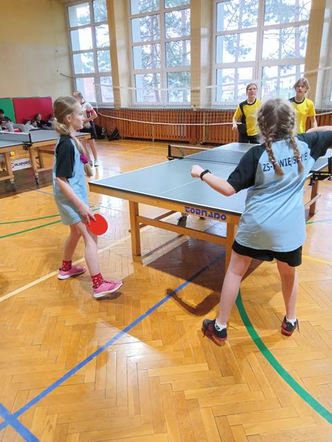 gminne zawody drużynowe w tenisie stołowym chłopców i dziewcząt