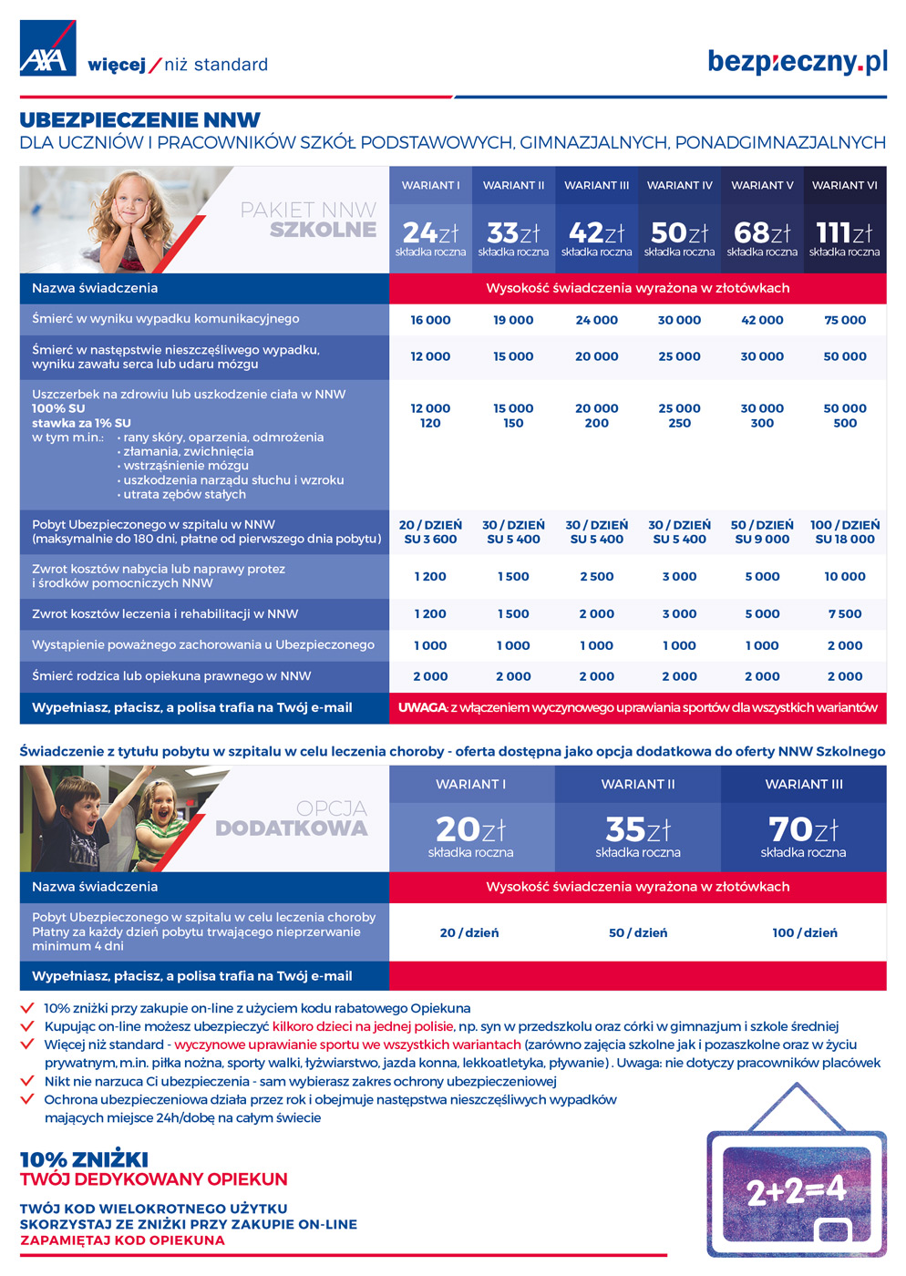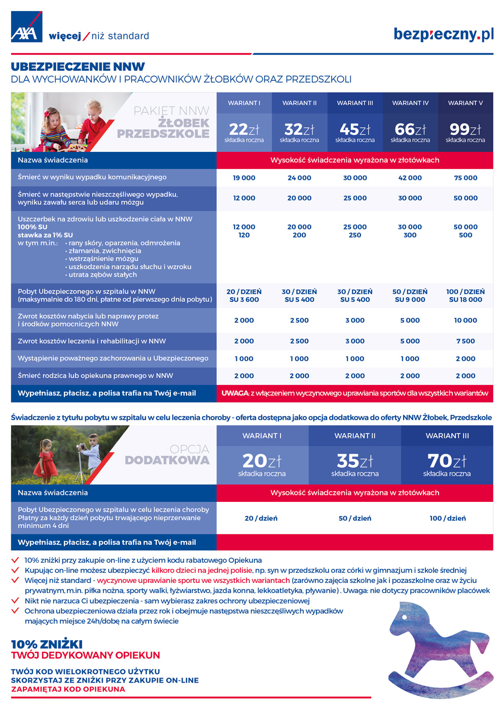 Korzystając z kodu rabatowego Opiekuna 66088 można również ze zniżką  10% ubezpieczyć lub dobezpieczyć dzieci w innych placówkach oświatowych,proszę nie klikać w reklamy tylko zawsze wejść na główną strone www.bezpieczny.pl